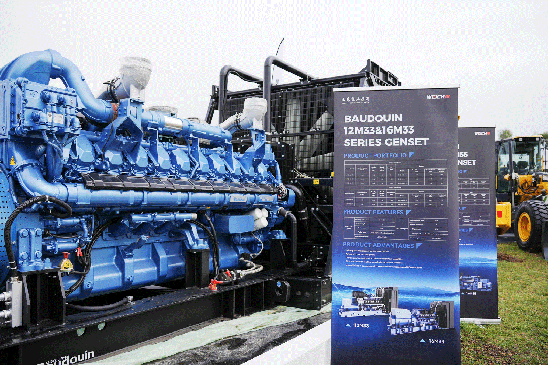 At this exhibition, Weichai showcased the Baudouin M-series 6M33 pump diesel engine and 20M33 large-bore generator set.
